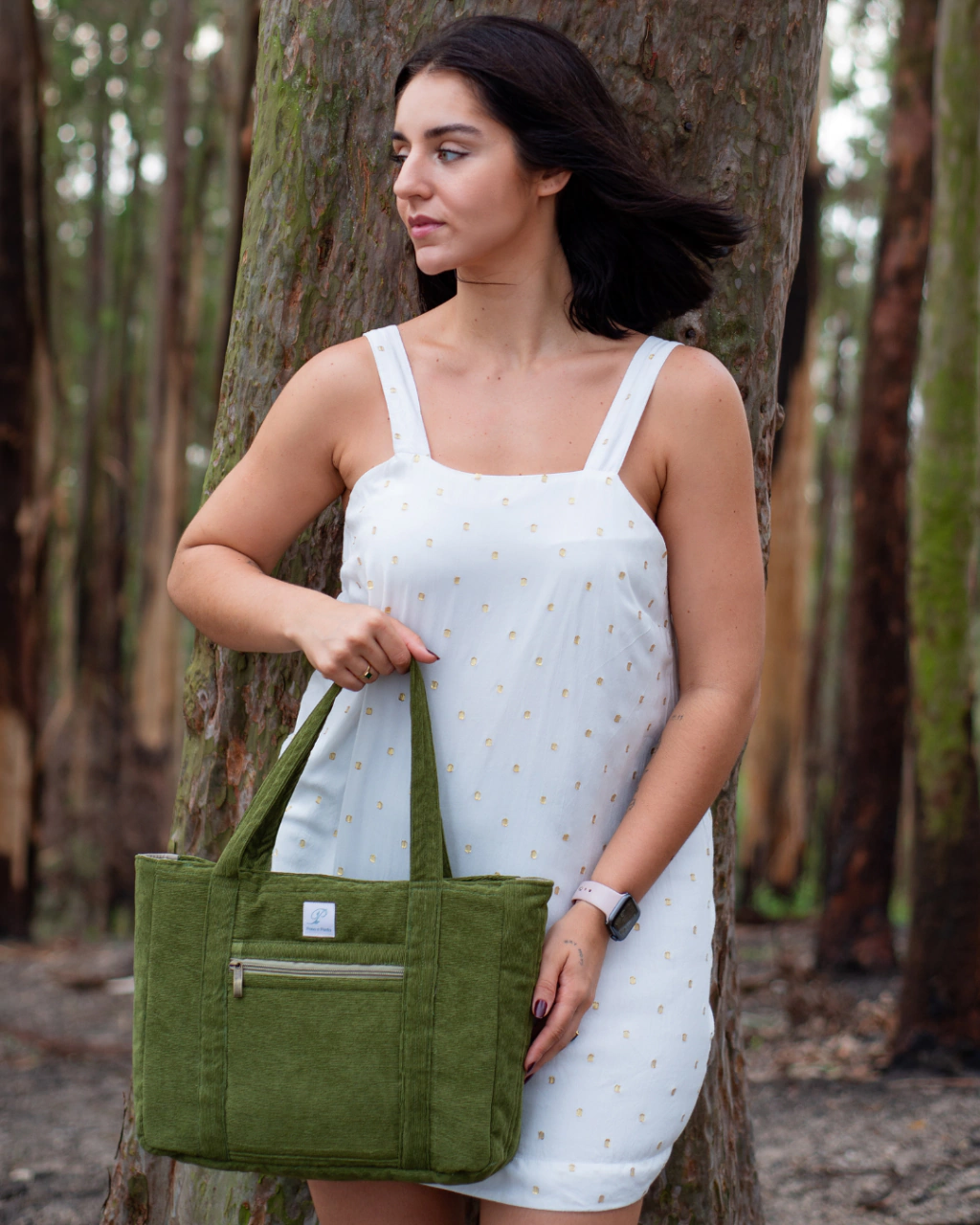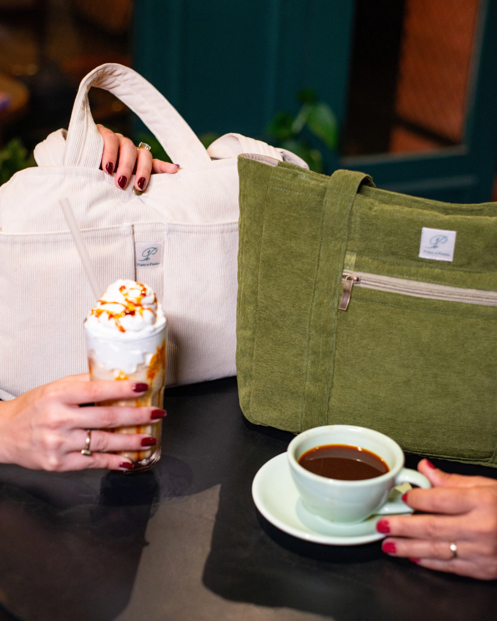Feita a mão, tecido de textura macia do veludo cotelê e estrutura reforçada para quem precisa de praticidade no dia a dia sem abrir mão do charme.